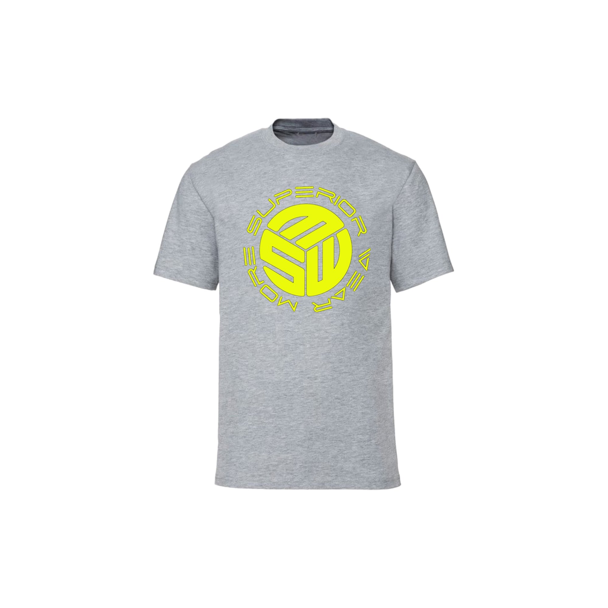 MSW circular logo neon yellow graphic oxford grey tee