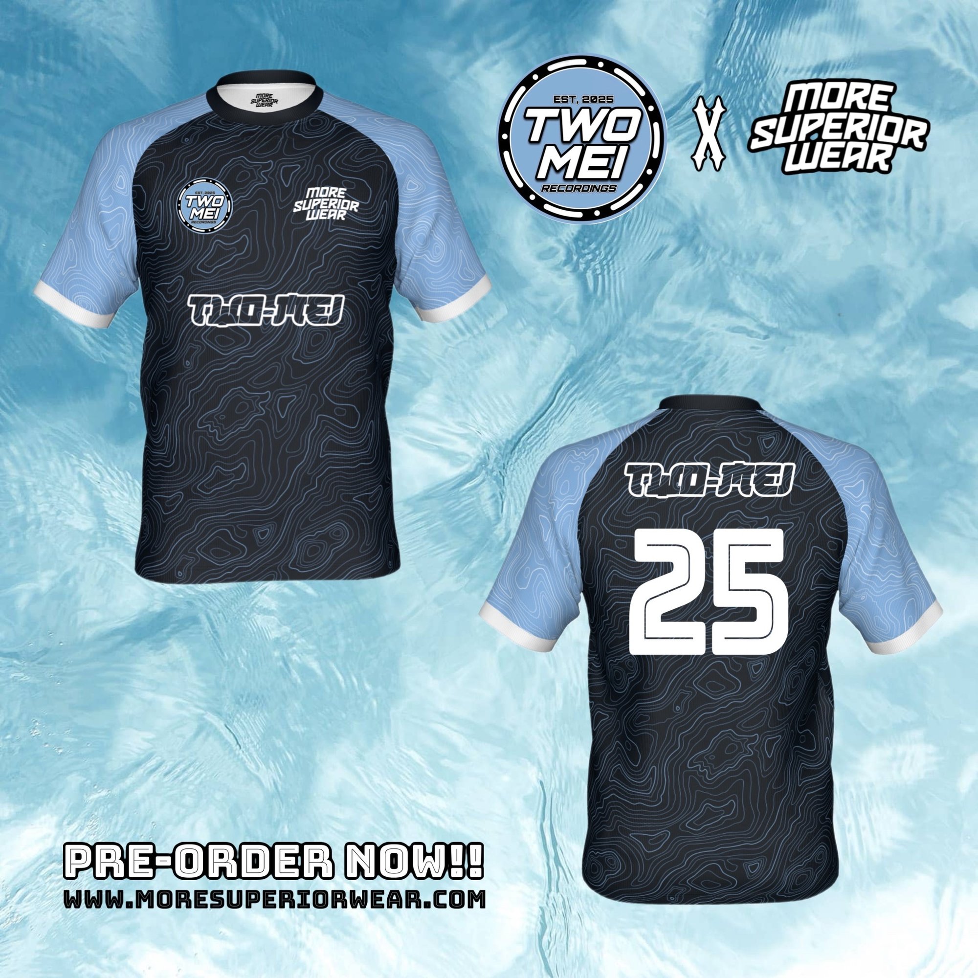 Bespoke 'wavey' pattern black & sky blue football jersey